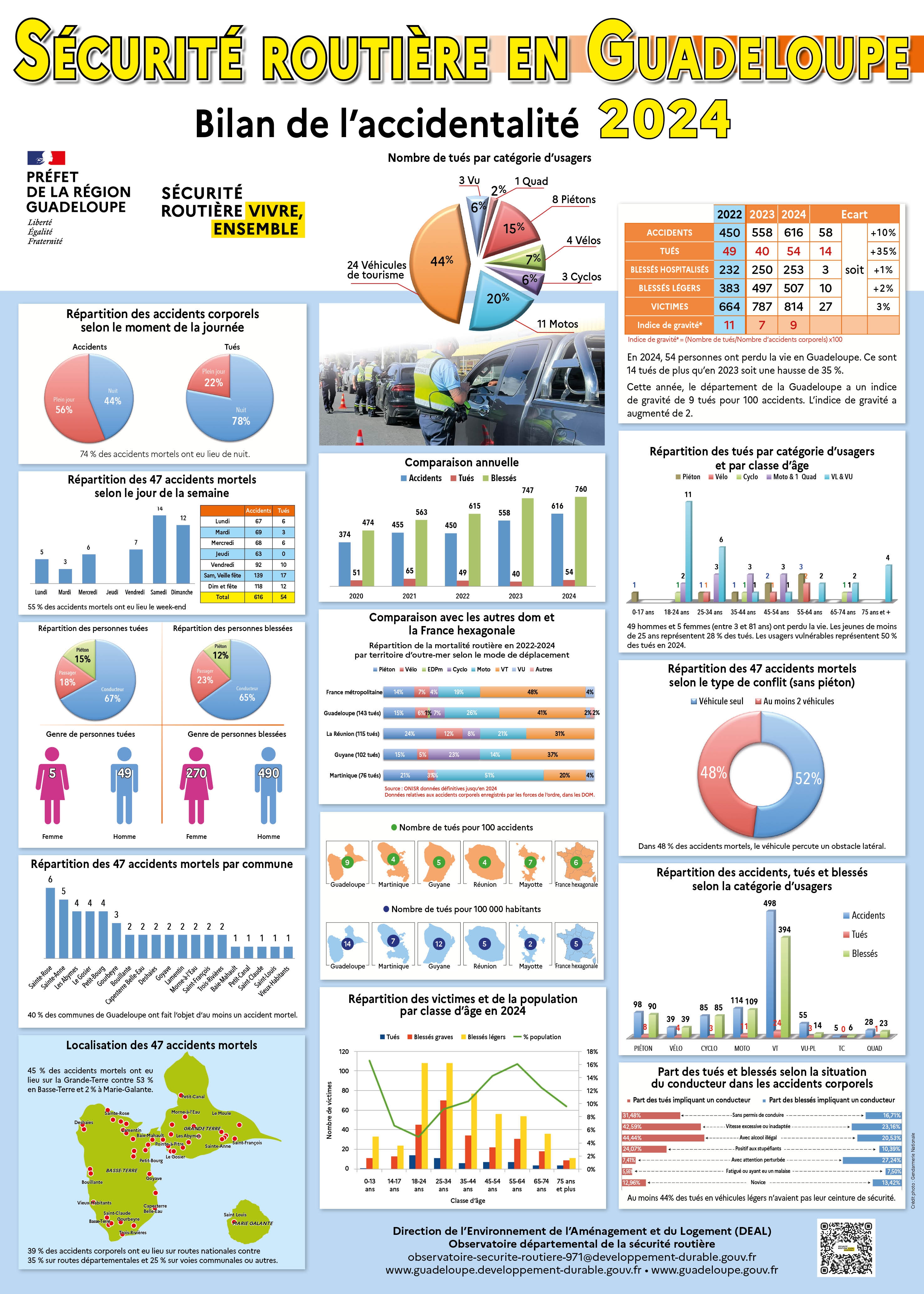 L’Observatoire départemental de la sécurité routière vous présente le bilan de l’accidentalité 2024 pour la Guadeloupe.